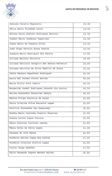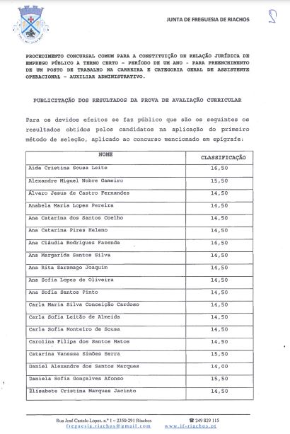 Resultados da prova de avaliação curricular